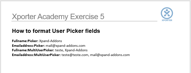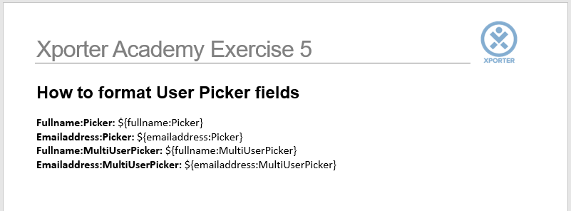 In this exercise, you'll learn how to set which Profile details from User Picker fields will be printed using Xporter.