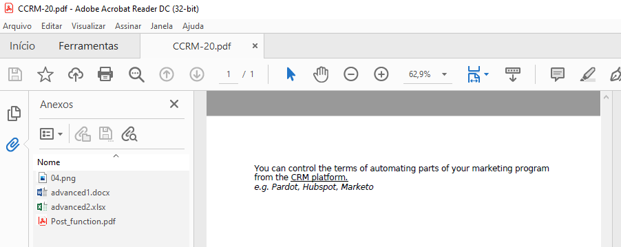 If you have attachments on an issue and you try to export a template with an extension PDF, you will able to see the symbol  in the left sidebar in the Adobe Acrobat Reader, the attachments included in the document generated. To open an attachment, you just need to do double-click on the attachment icon, see the examples below.