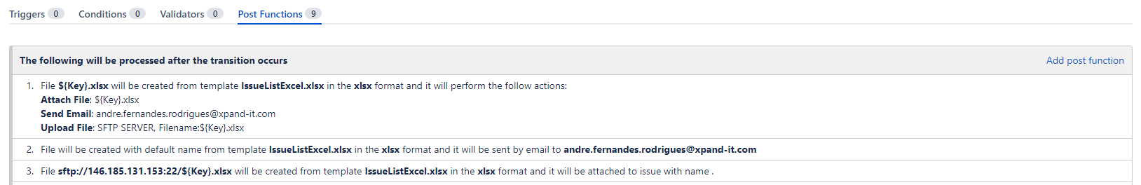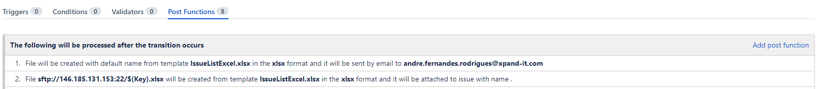 Finally, delete both post functions deprecated, and from now on the actions will be performed from the Xporter Multi-Action.