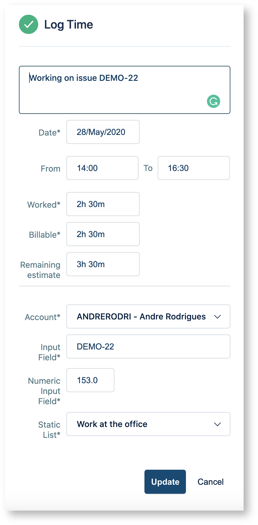 Several improvements were done on the integration with the Tempo Timesheets app. Now it's possible to export all of the Tempo worklog fields.