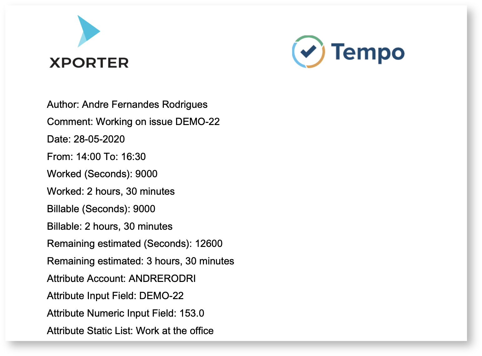 Xporter improved the integration with Tempo Timesheets in order to be able to export all the fields from Tempo.