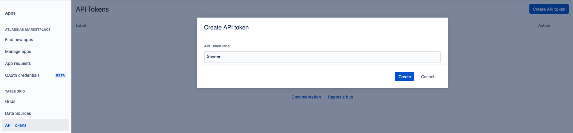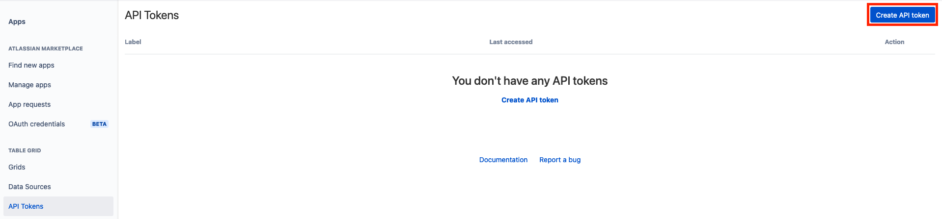 - In the Apps administration panel, in the Table Grid Tab click in "API Tokens";