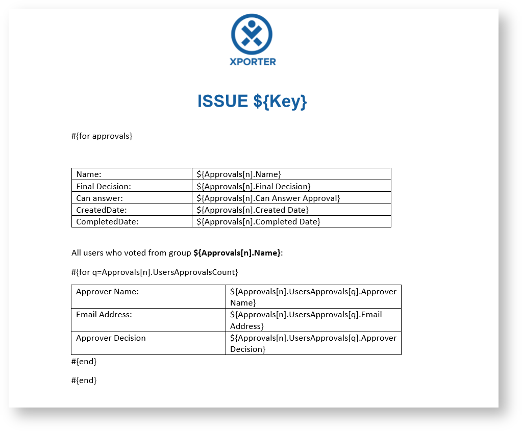 This translates to a Word document template as resolved by Xporter for Jira: